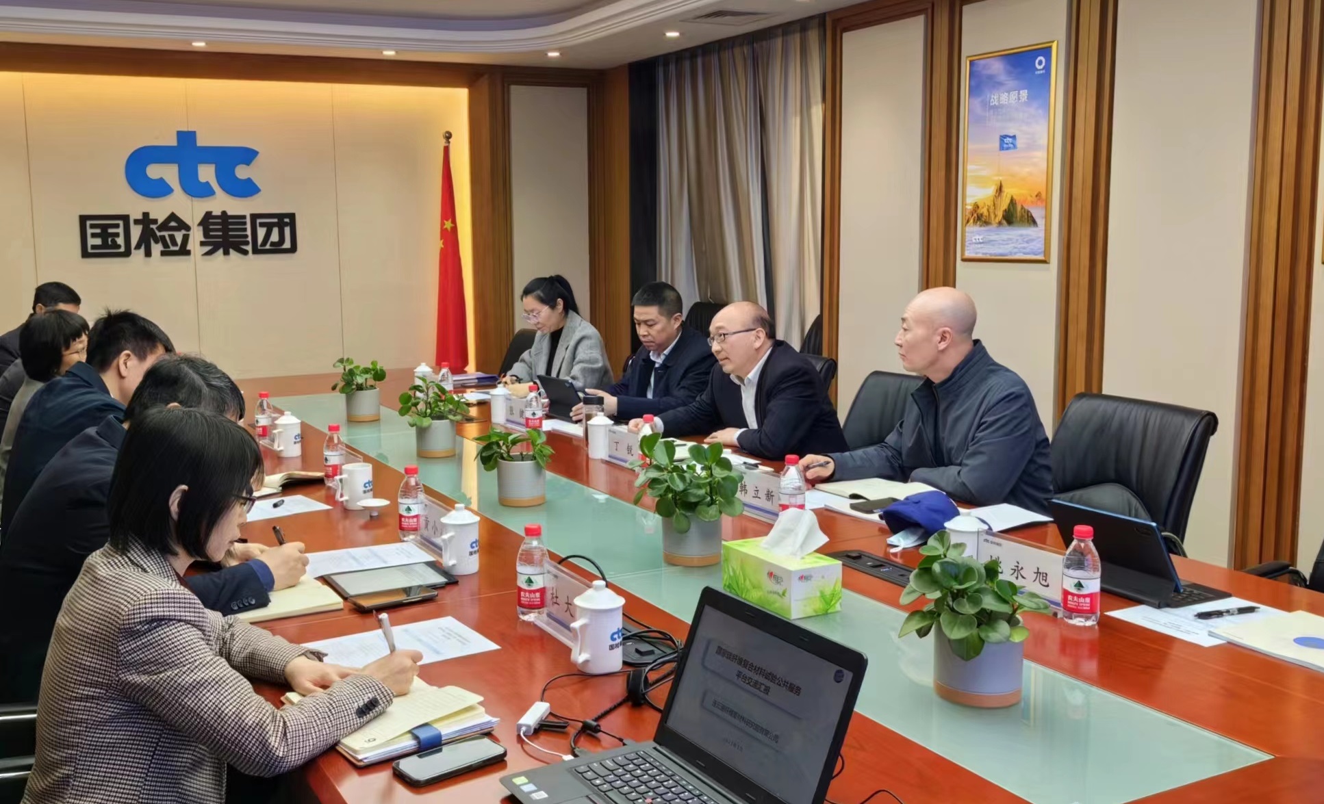 国检集团党委书记、总经理朱连滨,党委副书记陈璐对丁锐的到来表示欢迎。双方分别介绍了国检集团、工投集团、碳纤维复合材料试验平台等基本情况,重点围绕合作基础、合作方向及合作模式进行深入探讨交流,在共建检测分支机构、共享实验室、共推研发项目及共担检测业务等方面达成共识,下一步将继续深化交流,推进具体合作事项开展,加快实现资源融合、共同发展。