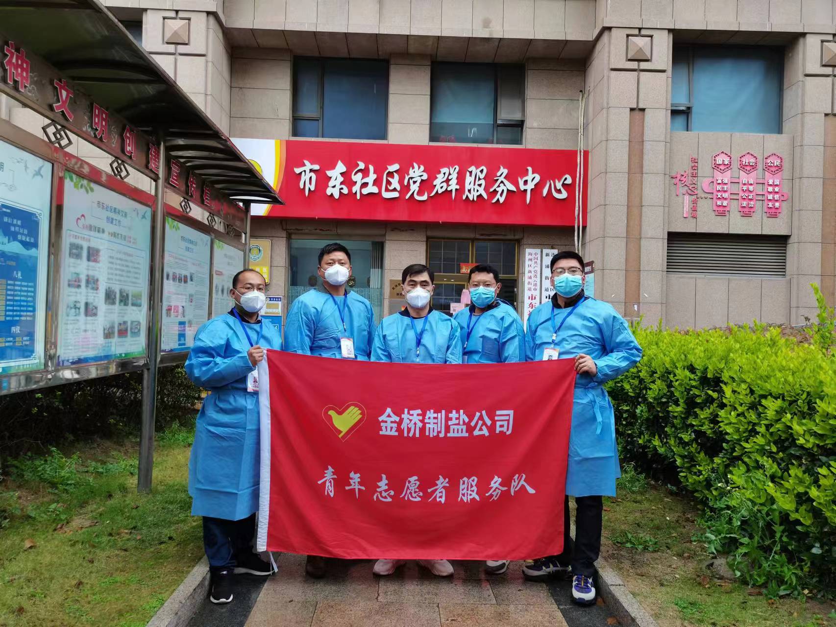 11月19日下午,按照集团党委统一指挥、统一协调、统一调度,供电工程分公司、金桥制盐公司、华茂公司、房地产公司、神特公司、资产公司、金航公司等单位第一时间集结可用人员力量,除保障生产、居家隔离等人员外,党员带头、青年团员和群众志愿者争相递交“请战书”,迅速组建5支共30人志愿服务队,参与到海州区新浦街道5个社区疫情防控工作中,协助开展核酸检测、秩序维护、隔离管控、物资配送、社区服务、信息登记等工作,迎难而上,彰显国企担当,共筑“防疫屏障”。