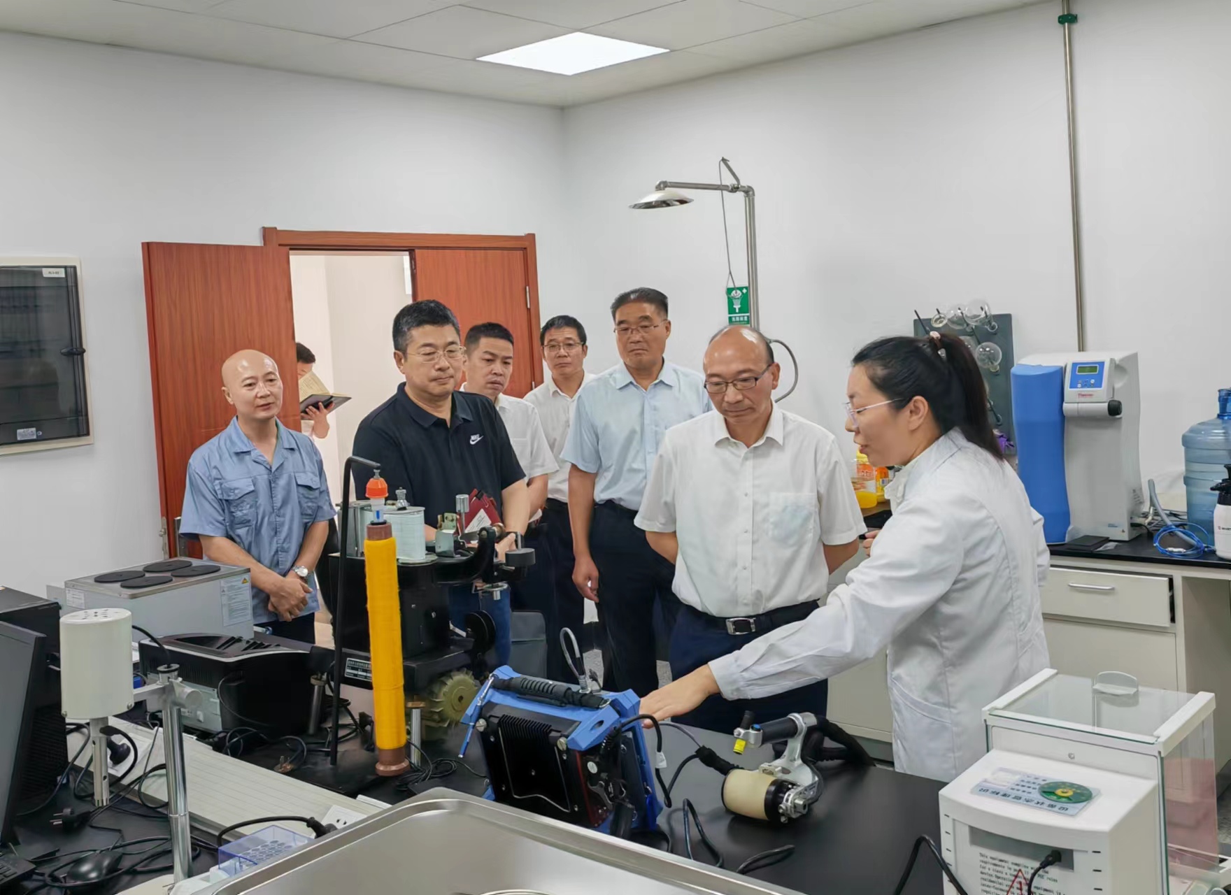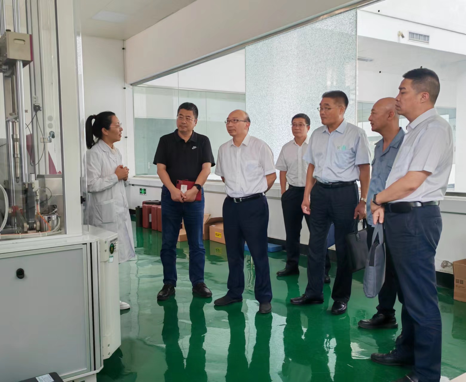 9月5日,集团公司党委书记、董事长丁锐,副总经理王士华、刘承志等一行到纤维新材料研究院调研。