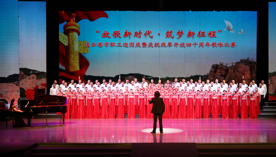 9月28日下午,由市委宣传部、市总工会、市文广新局联合举办的“放歌新时代·筑梦新征程”——连云港市职工迎国庆暨庆祝改革开放四十周年歌咏比赛在市艺术中心隆重举行。来自各县区、各条战线的16支代表队参加比赛,经过3个多小时紧张角逐,集团公司组织的100人合唱队以《走向复兴》、《天路》两首激昂向上的歌曲脱颖而出,获得一等奖。