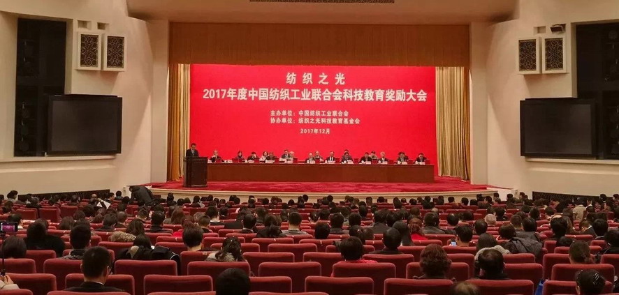 2017年12月18日,“纺织之光”2017年度中国纺织工业联合会科技教育奖励大会在人民大会堂隆重召开。中国纺织工业联合会党委书记兼秘书长高勇,会长孙瑞哲,副会长李陵申、端小平等行业领导出席了大会。