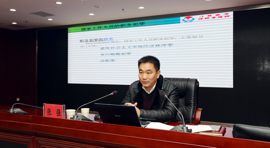 为进一步帮助广大干部职工筑牢思想道德防线,预防职务犯罪,12月28日上午,集团公司举行廉洁履职警示教育专题报告会,邀请江苏田湾律师事务所副主任张强作廉洁履职专题报告。集团公司领导班子成员,各单位领导班子成员、三级法人单位党政负责人、集团总部全体管理人员参加报告会。
