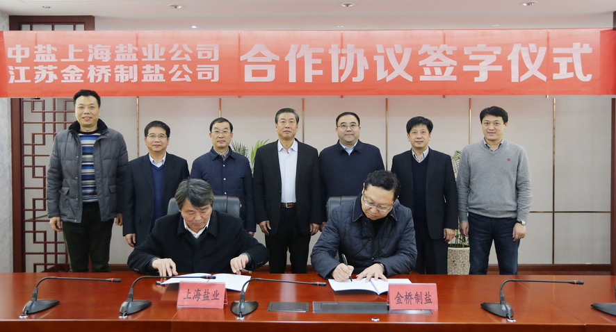 12月16日下午,金桥制盐有限公司与中盐上海盐业公司举行战略合作协议签约仪式,集团公司董事长、党委书记杨龙,总经理胡建明、副总经理杨国新,上海盐业公司总经理、上海市盐务局局长王学仕,上海盐业公司党委副书记李光锐等出席签约仪式。金桥制盐公司董事长朱桂玉与上海盐业公司总经理助理刘树国代表双方在协议上签字。