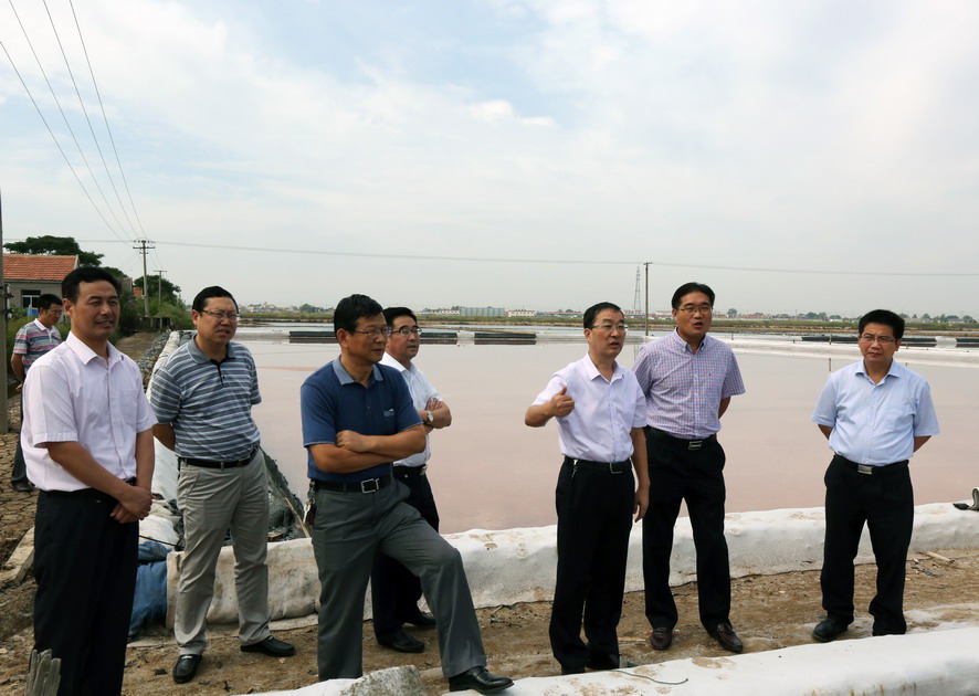 胡总一行先后赴金桥制盐公司原料车间、徐圩新滩服务区和灌西原柴门制盐分公司进行现场调研,实地查看生产情况。随后,在灌西投资公司会议室,召开海水原料盐生产基地论证会。灌西投资公司总经理李国文、徐圩投资公司董事长刘承志分别就各自的海水盐基地建设方案进行了说明。与会人员各抒已见,从建设海水盐基地的必要性、经济效益、盐质盐色控制和管理机制等方面进行了深入探讨。