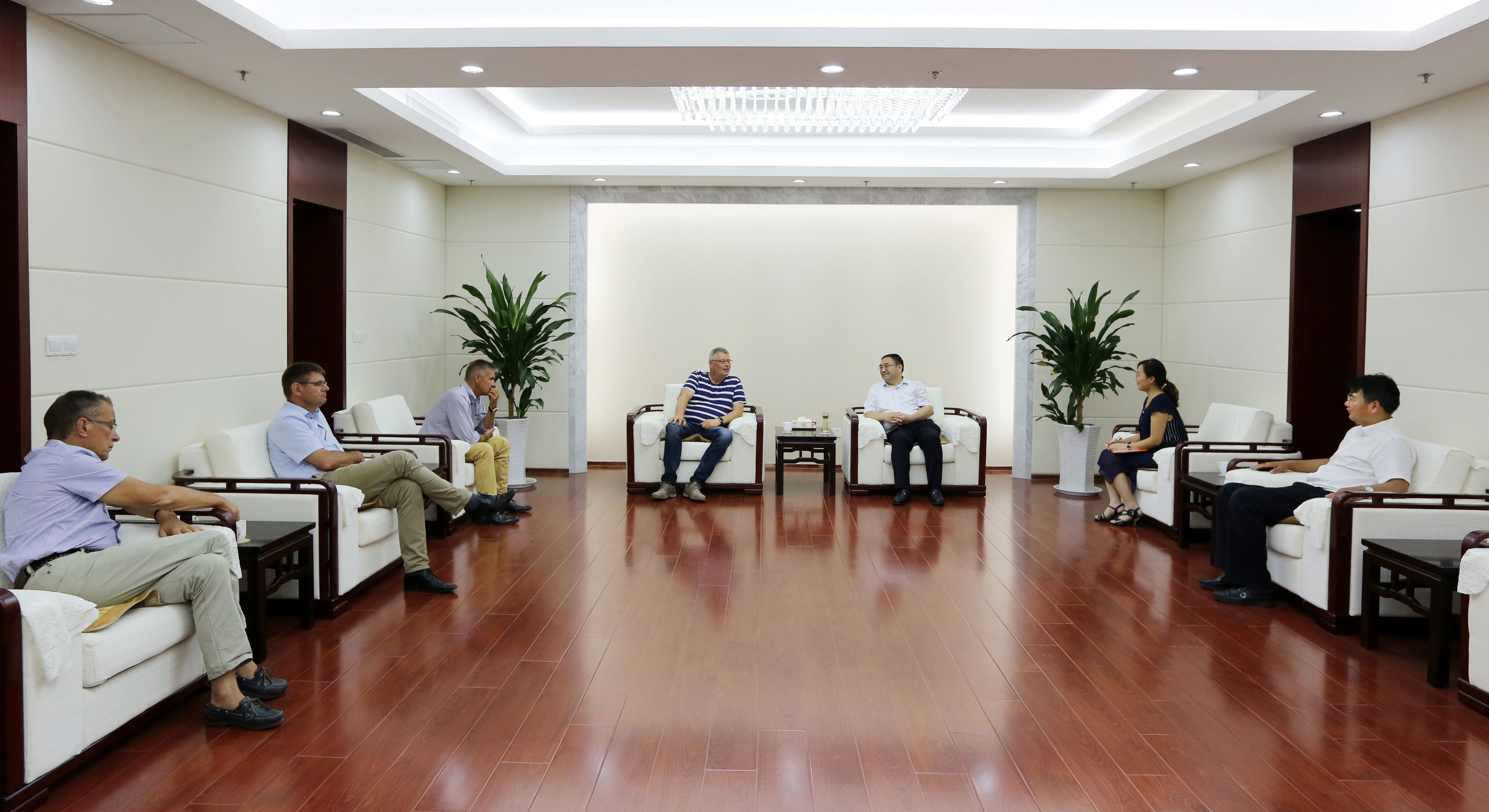 6月21日下午,集团公司董事长、党委书记杨龙在总部会见前来拜访的丹麦北欧农庄董事会主席克劳斯·伊沃斯、连云港北欧农庄生猪养殖有限公司首席执行官杨林柏等一行,双方就深化项目合作进行了深入细致的交流。灌西投资公司董事长、党委书记王德志参加会见。