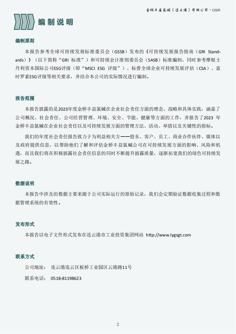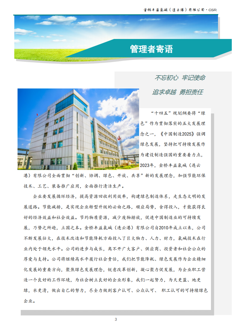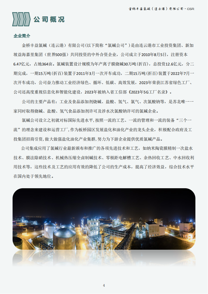 金桥丰益氯碱(连云港)有限公司2023年可持续发展报告公示