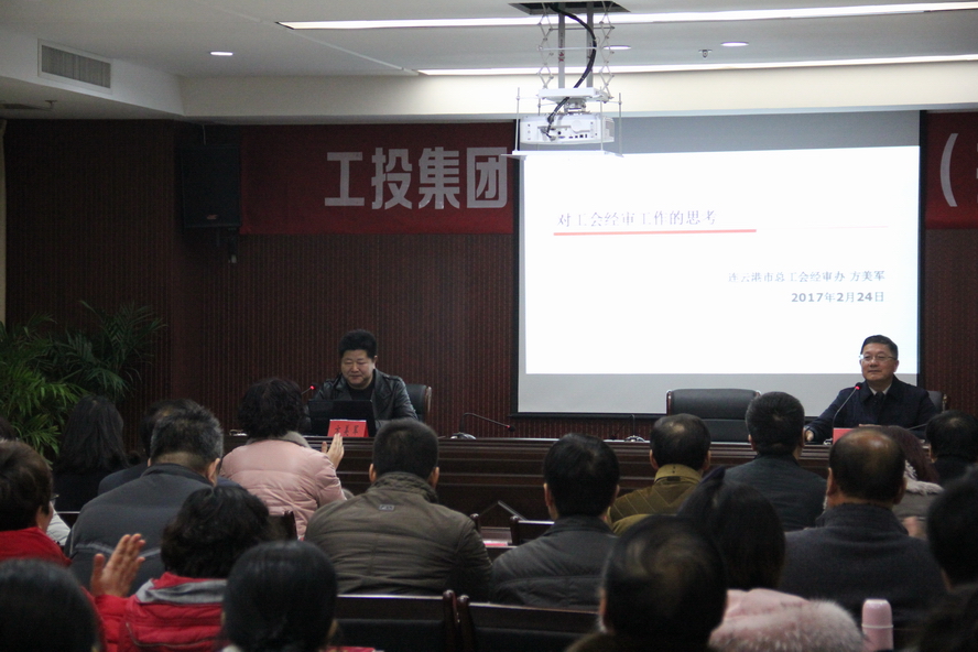 2月24日,集团工会在总部举办了工会干部专题培训班,邀请连云港市总工会经审办主任、市总工会全职律师方美军作了《对工会经审工作的思考》的专题辅导讲座,集团公司各权属单位70余名工会干部及部分工会专(兼)职会计参加了培训。 (工投工会)