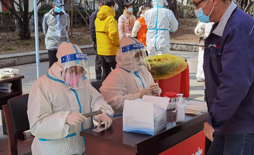 加强团结协作,开展志愿服务。部分职工由于区域管控原因,无法到岗上班,他们充分发挥共产党员的先锋模范作用,积极参与当地社区的防控志愿服务,让党徽闪亮在战“疫”一线。配送中心支部书记、主任周玲玲,党委工作部、工会干事张飞,配送中心装卸班组陆长征几位同志,与所在社区工作人员并肩作战,投身社区防控一线和核酸检测点,开展志愿服务活动,做好维护防控区域秩序、引导居民做好防护、采集样本信息录入、为社区居民配送生活物资等工作,用实际行动筑起阻击疫情的防线。