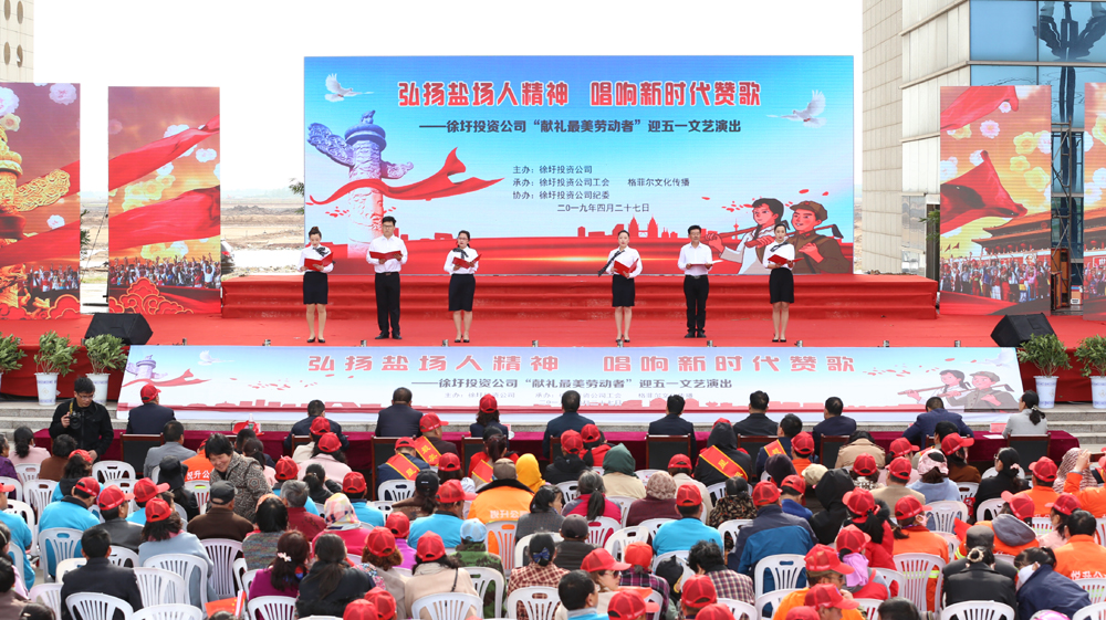 徐圩投资公司举办“献礼最美劳动者”文艺演出,并举行首届“星级员工”和“最美职工家庭”获得者颁奖仪式。