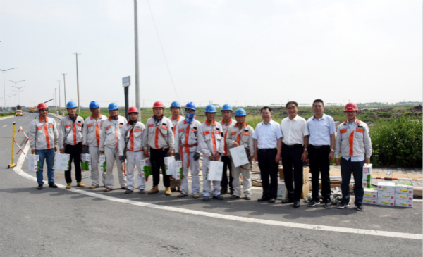 8月1日上午,集团公司党委副书记戴鸿鸣、工会主席刘承志一行,深入公司施工现场,走访慰问职工,把防暑降温用品送到他们手中,在炎炎夏日,为一线职工送去集团公司的深切关怀。 在台北工地,戴书记与施工人员亲切交谈,简要了解工程的施工情况,叮嘱他们在夏日高温期间要注意安全,做好防暑降温措施,确保生产安全和身体健康。