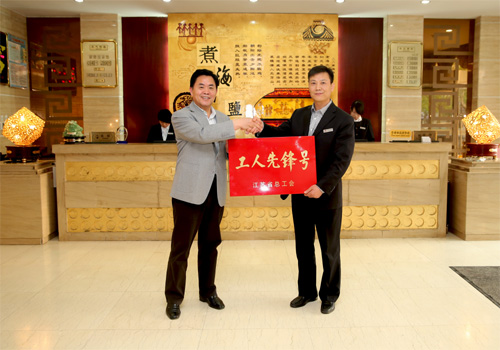 五一前夕,集团公司董事长、党委书记顾永庚向荣获2014年度江苏省“工人先锋号”荣誉称号的公司淮盐大酒店授牌。顾董事长勉励淮盐大酒店全体员工继续发扬这种争创一流的巨大热情和无穷智慧,珍惜荣誉再创佳绩,继续担当服务行业的领跑者。这是淮盐大酒店获得2013年连云港市“工人先锋号”和2012年连云港市“五一巾帼标兵岗”后又一荣誉。