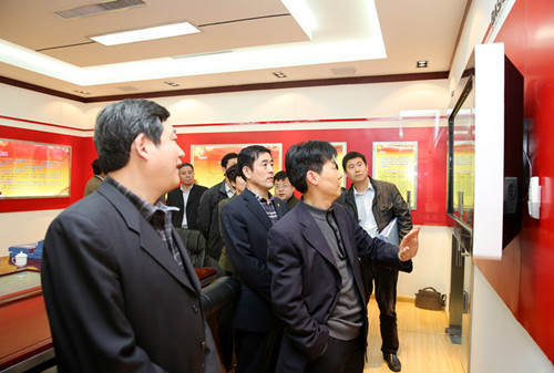 在公司四楼党建一体化活动室,郝组长一行参观了公司党建一体化和群众路线教育实践活动成果展示,对我公司开展的群众路线教育实践活动予以充分肯定。同时,对公司利用现代媒体信息技术开展的电子党建、网络党建也给与了高度评价。