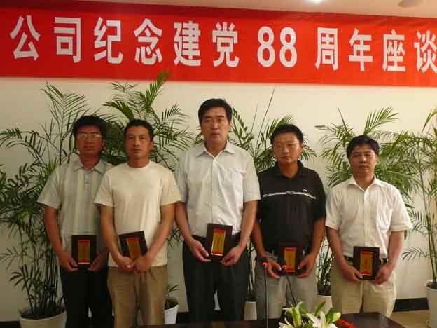 6月30日,公司党总支召开了纪念建党88周年座谈会。在座谈中,与会人员结合工作实际,畅谈了对党的认识和体会,交流了工作经验。大家纷纷表示,要在工作、生活中充分发挥党员的先锋模范作用和基层党组织的战斗堡垒作用,以不懈的追求、高尚的精神、出色的业绩、良好的形象,为公司的发展作出贡献;进一步发扬爱岗敬业、诚实守信、服务群众、奉献社会的职业道德,在平凡的岗位上为广大群众和社会贡献自己的光和热。会上还对我公司2008年度的优秀共产党员、优秀党小组长、优秀党小组以及“三强党支部书记”进行了表彰。最后,总支书记范益宝和与会人员一起观看了大型历史纪录片《长征》,以此来回顾中国共产党88年来所走过的光辉历程。