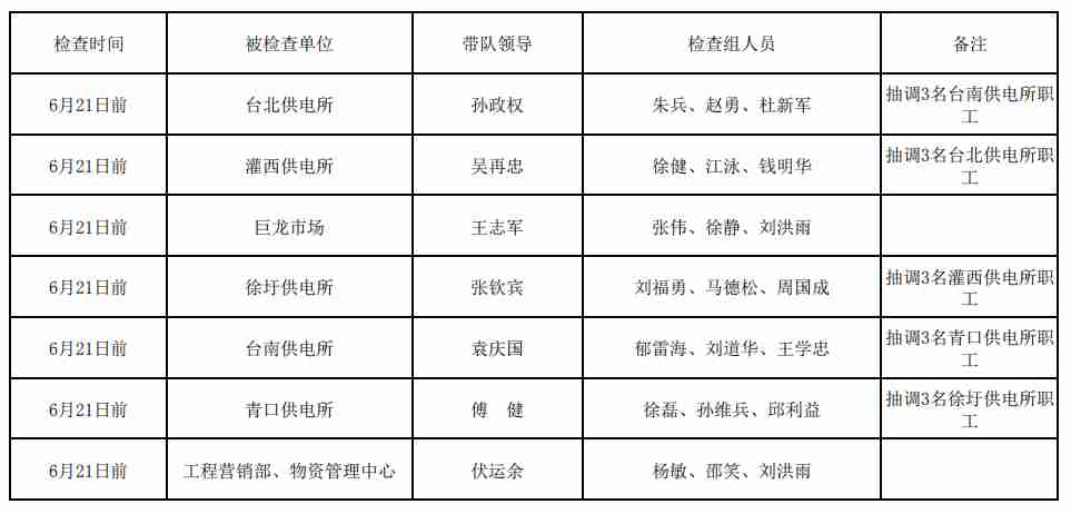 2019年安全月安全大检查日程安排