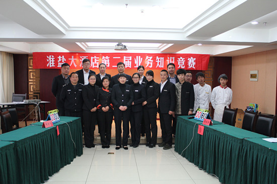 为了进一步提高酒店全体员工安全生产意识以及酒店专业业务水平,淮盐大酒店于11月19日举行第二届“酒店综合知识竞赛”,酒店总经理伏运余、副总经理杨帆、质检经理周洪近、餐饮经理郭天丽担任裁判,现场气氛非常活跃,竞赛取得圆满成功。