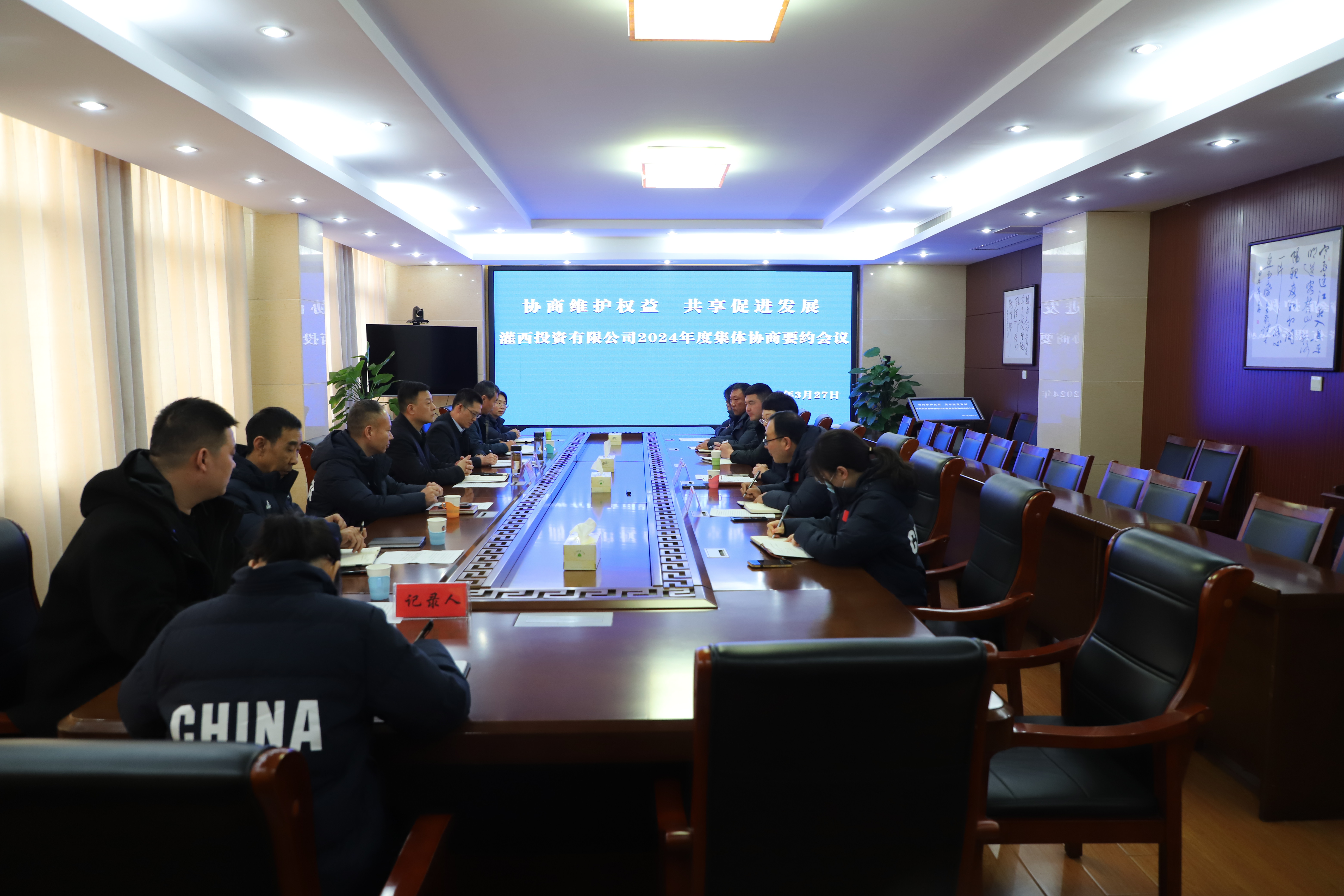 “2023年,两大公司实现营业收入3.21亿元,利润8563.59万元,为让职工与公司共享发展成果,我方建议2024年职工工资增涨比例为8%-10%”“我们承诺,灌西职工的工资增涨比例将走在集团前列”.....来自心底最真实的掌声在灌西投资公司集体协商要约会上频频响起。
