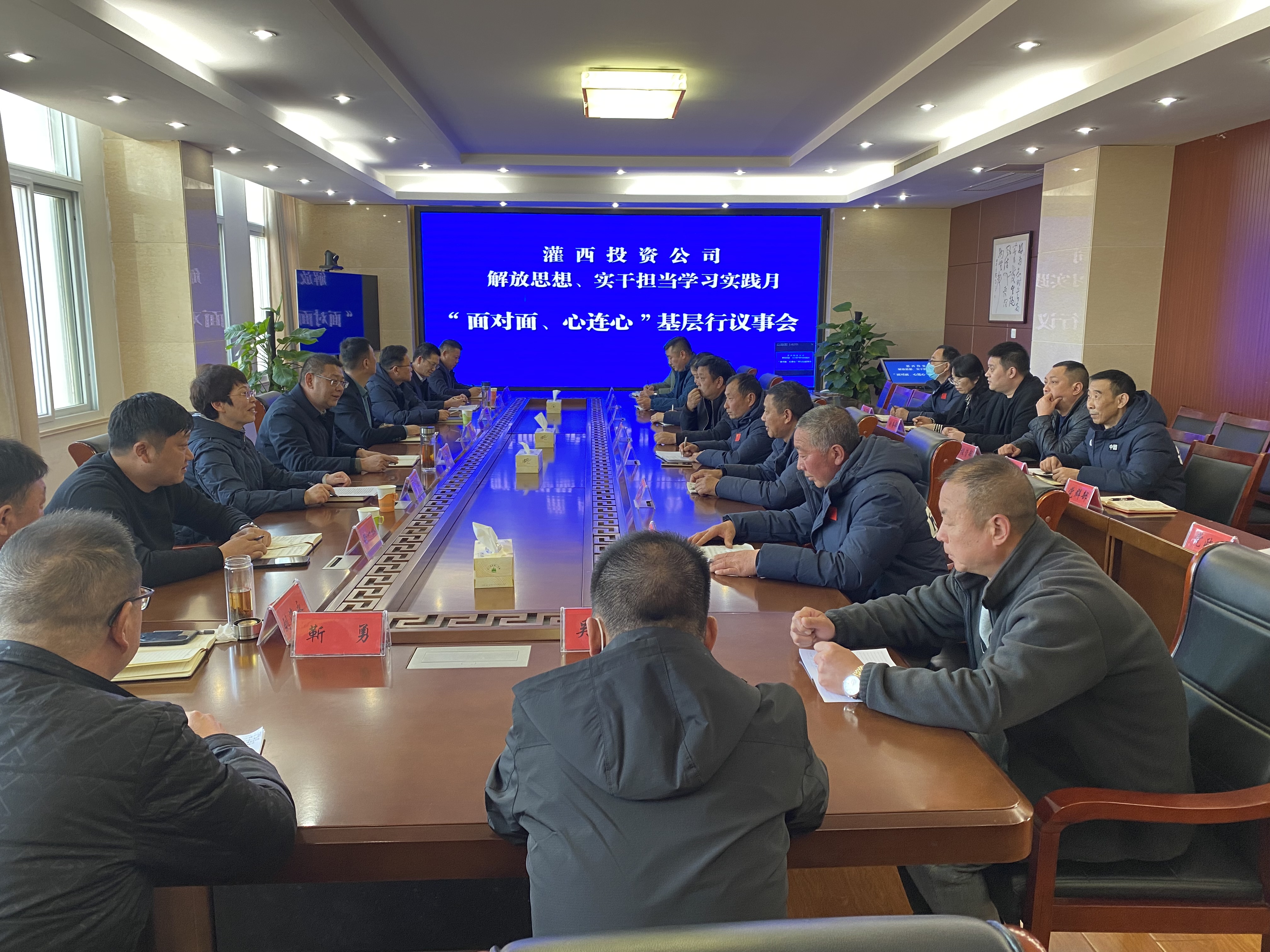 自“解放思想、实干担当学习实践月”活动以来,灌西投资公司坚持问题导向、目标导向、效果导向,纵深推进学习实践,3月19日,灌西投资公司召开“面对面、心连心”基层行议事会,公司班子成员、职工代表及各部门负责人参加议事会。