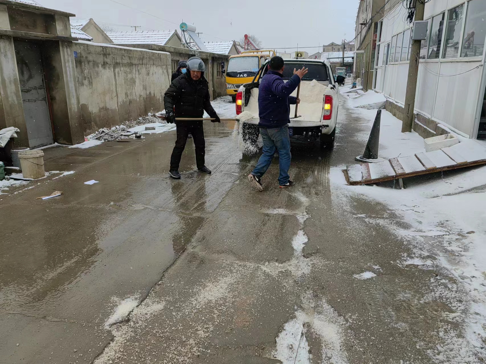 面对冰与雪的考验,行动就是最好的融雪剂,大家手持铁锹,积极清理辖区内的路面积雪,忙碌的身影成了盐场里一抹靓丽的风景线。低温降雪天气还在持续,公司将继续发挥党员先锋模范带头作用,整合力量,做好辖区扫雪除冰工作,加大风险排查力度,对重点区域进行提前工作铺排,为职工群众安全出行保驾护航。(西安西宣)