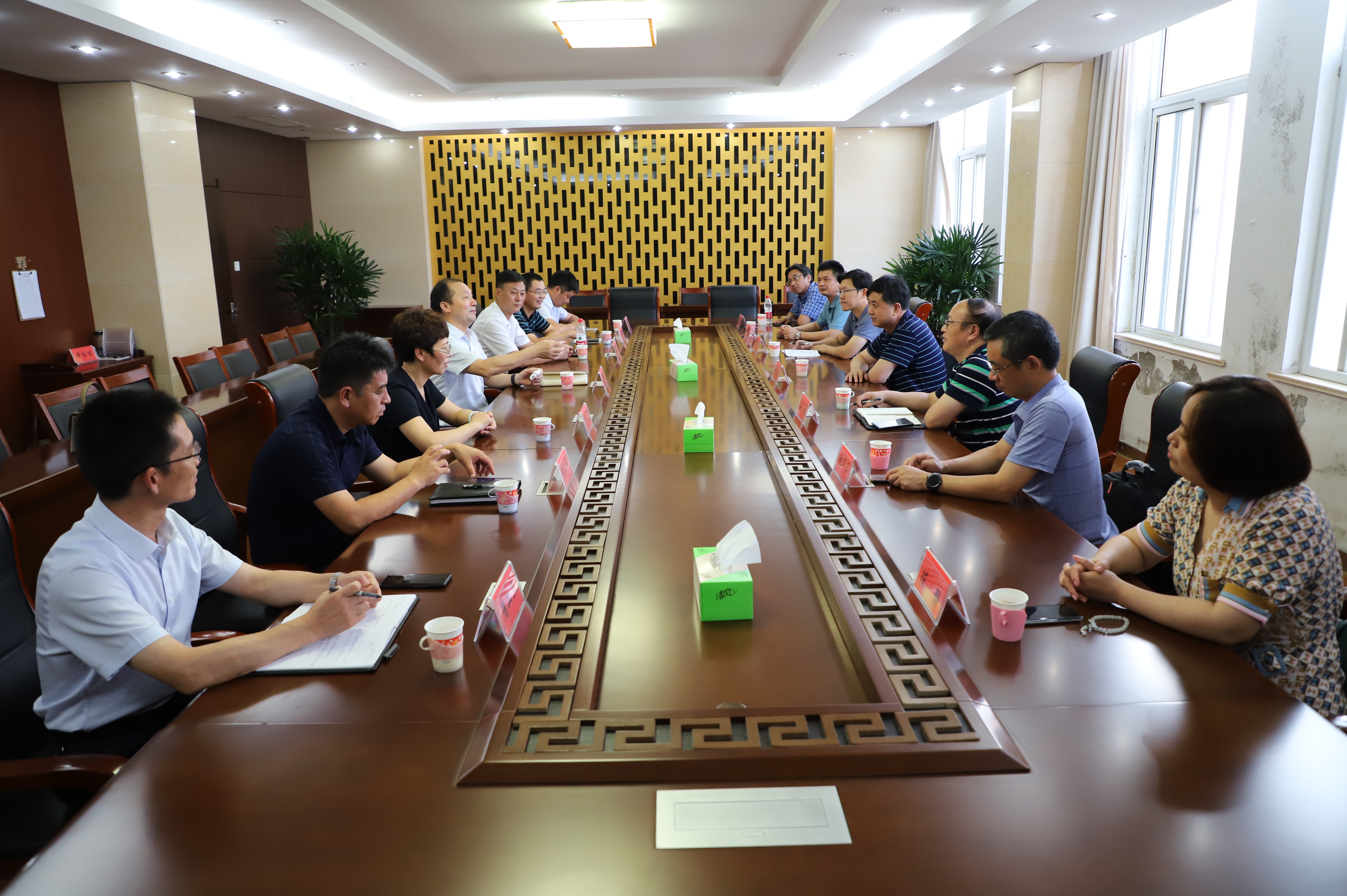9月17日,兄弟单位连云港杜钟新奥神氨纶公司调研组在党委书记胡传法带队下,来灌西观摩学习交流工作,灌西投资公司党委书记、董事长、总经理李国文等领导陪同交流。