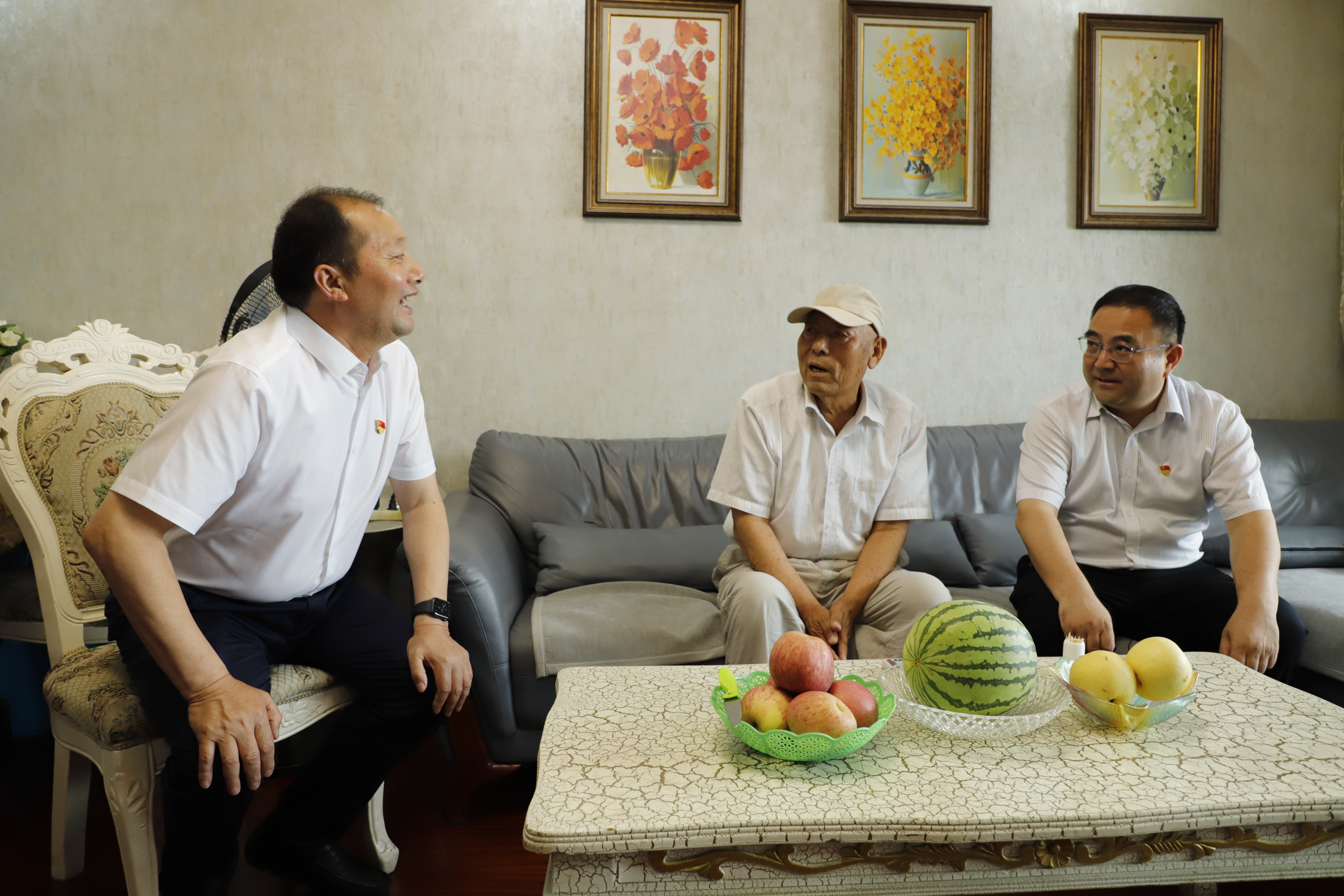 在喜迎中国共产党成立100周年之际,6月24日下午,集团公司党委书记、董事长杨龙走访慰问灌西困难老党员,灌西投资公司党委书记、董事长、总经理李国文陪同。