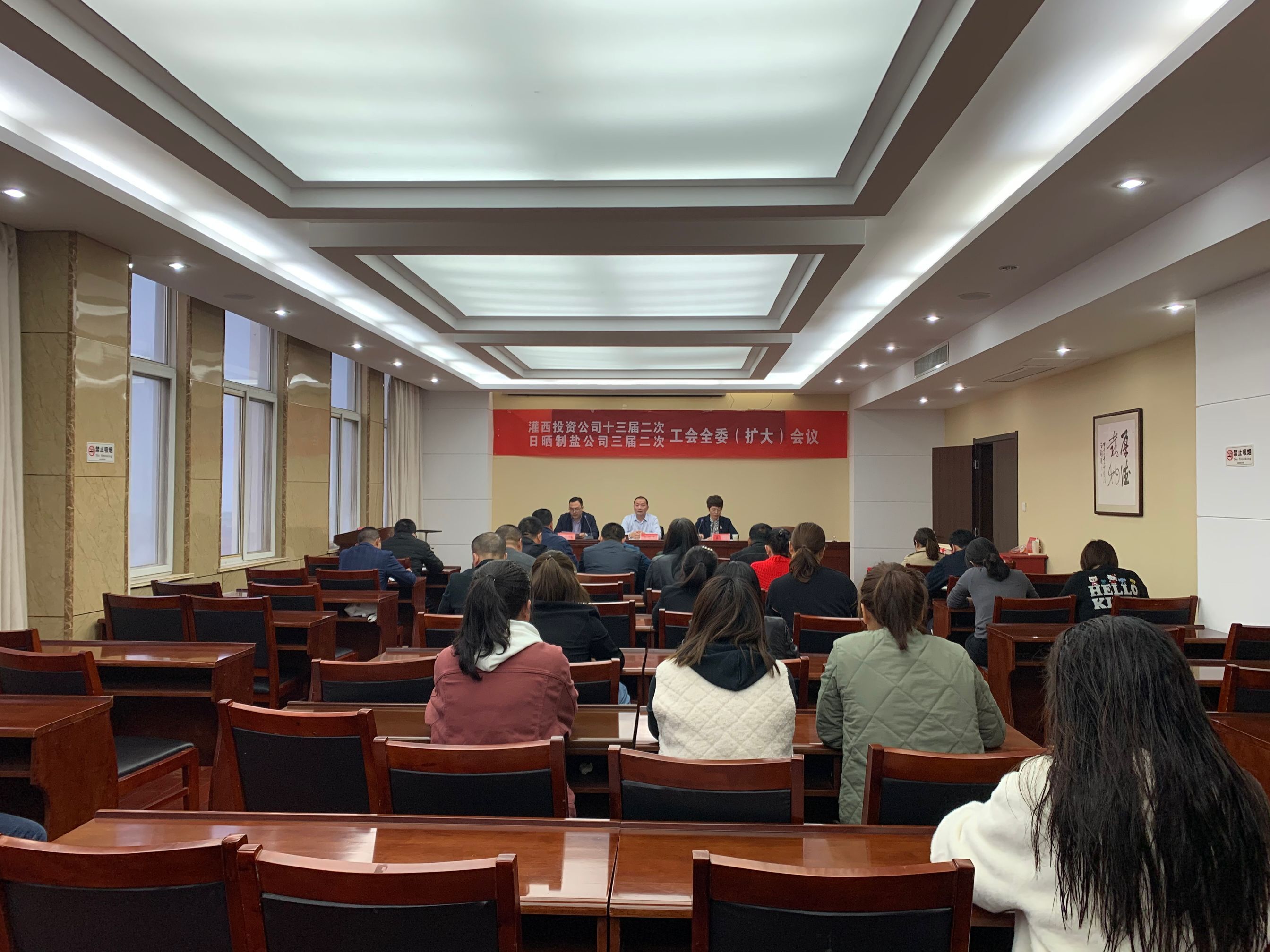 4月28日,灌西投资公司召开十三届二次、日晒制盐公司三届二次工会全委扩大会议,公司党委书记、董事长、总经理李国文出席会议并讲话,工会主席王宏作工作报告。工会委员会全体委员,各单位工会主席、女工委主任参加会议。