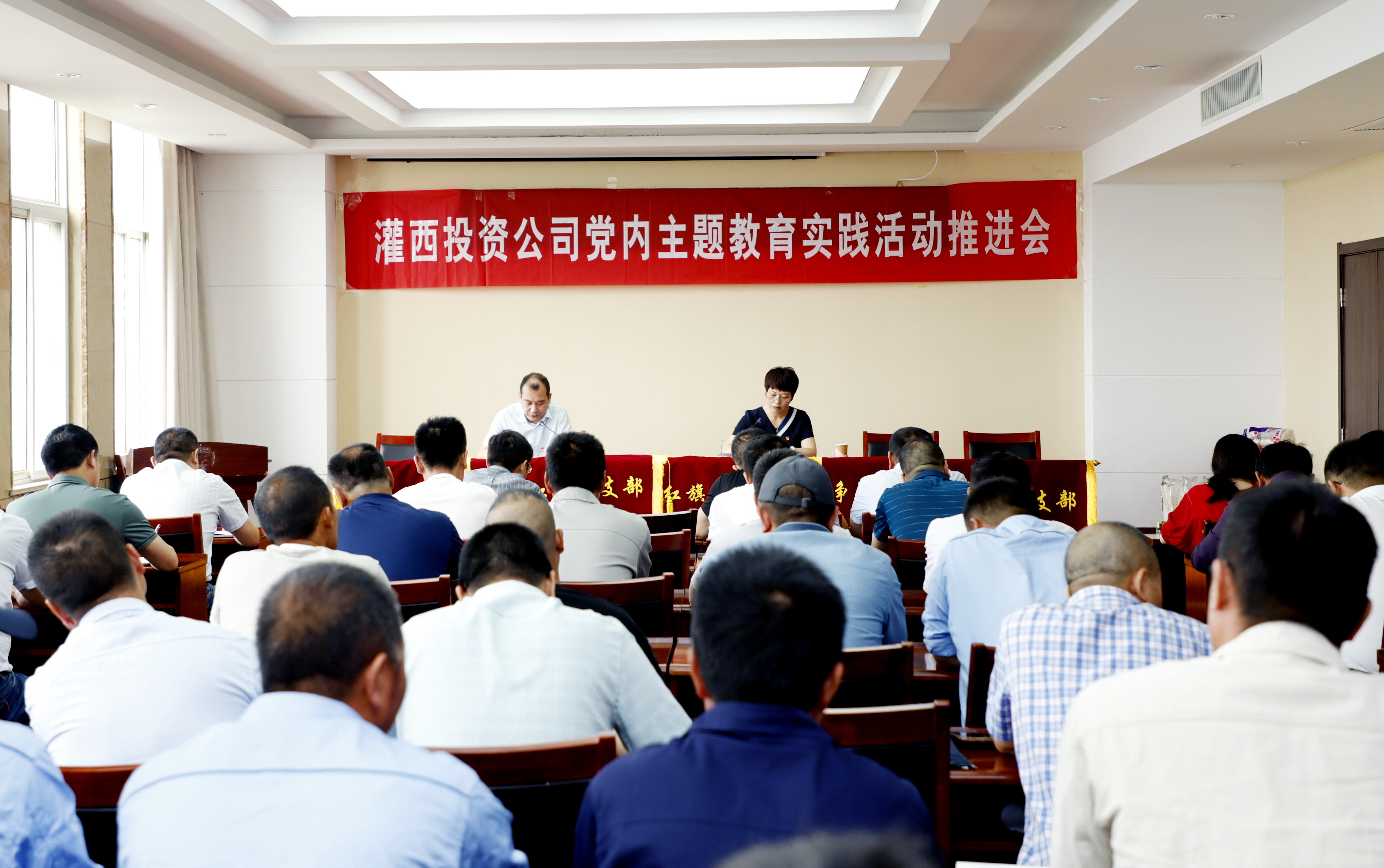 6月24日上午,灌西投资公司召开“党旗在改革提质中飘扬,党性在创新增效中锤炼”党内主题教育实践活动推进会。公司党委副书记、工会主席王宏、各支部书记及包片委员、机关党群部门人员、部分党员生产骨干参加会议。