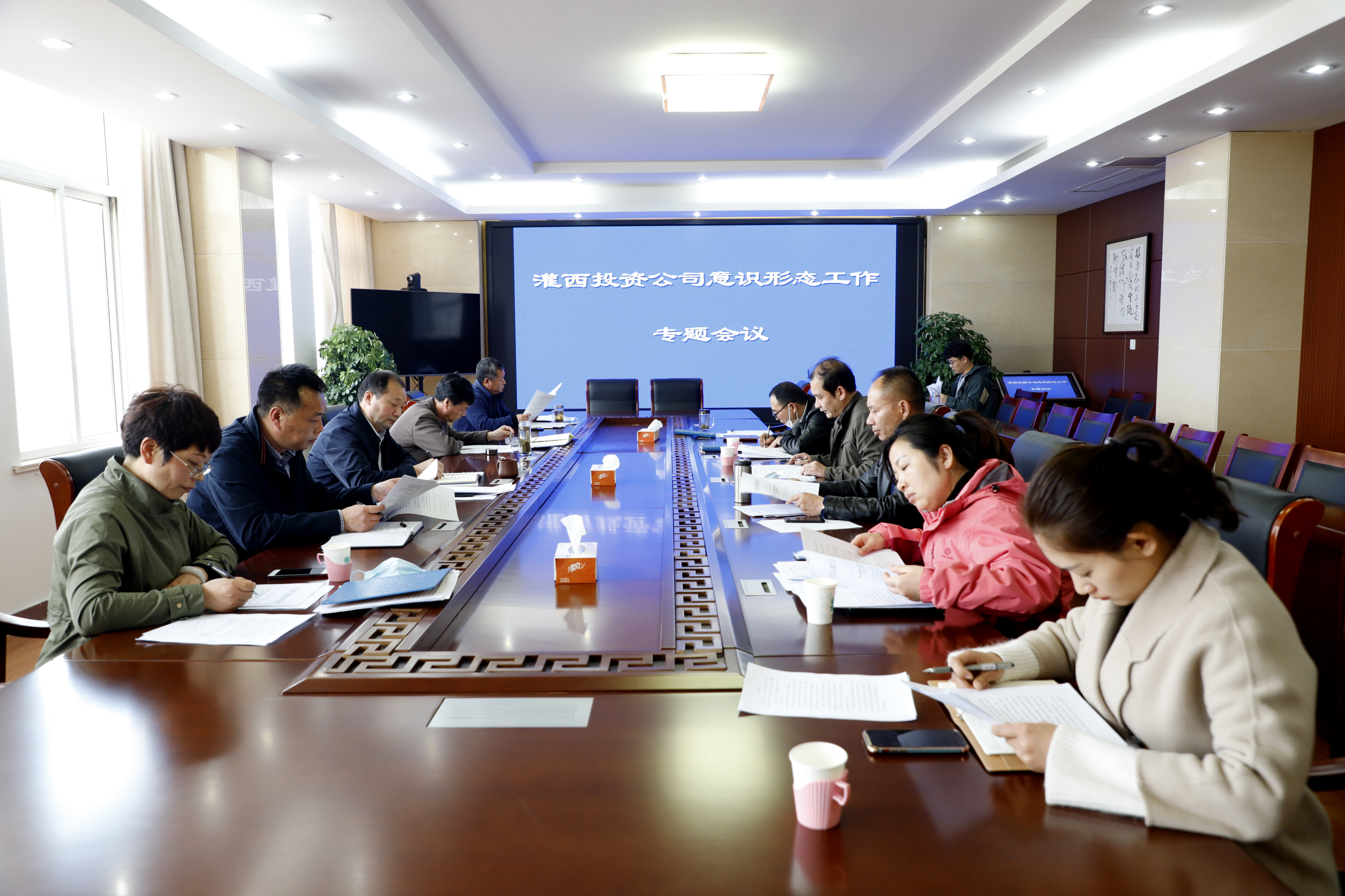 4月21日,灌西投资公司在机关三楼会议室召开中心组学习会,围绕习近平总书记“辩证唯物主义是中国共产党人的世界观和方法论”的重要论断进行专题学习。