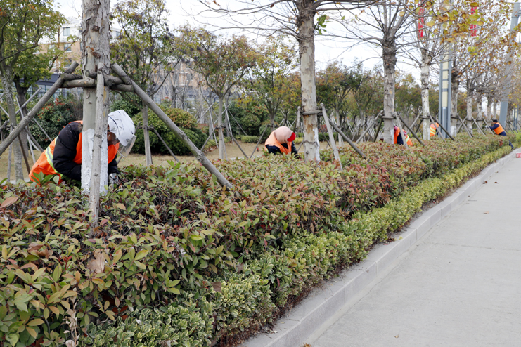 开展冬季树木虫害防治工程。按照不同植物的生长特点,分类修剪。模纹、绿篱、球类植物在保持原有层次造型的基础上进行精细化修剪;花灌木、小乔木顺其树势适当修剪,剪除砧木萌生枝条,枝条茂盛的灌木可适量疏枝,去除枯枝病枝、过密枝、乱生枝和残花败果,并尽量保持苗木自然生长状态;乔木根据需要进行适当疏枝,剪除枯枝、弱枝和病枝,刮除在树皮缝、树疤内、枝杈处的越冬害虫、病菌,并对树木进行涂白处理,减少明年病虫害发生基数。(张明建)