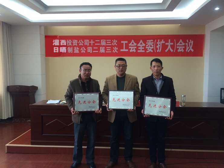 3月24日上午,公司工会在机关四楼会议室召开灌西投资公司十二届三次、日晒制盐公司二届三次工会全委扩大会议,各单位的工会主席、女工主任及受表彰的先进个人参加会议,党委书记、董事长王德志、工会主席王保平出席会议,会议由投资公司工会副主席、女工主任王宏主持。