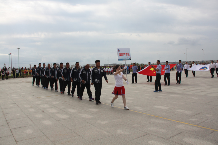 9点整开始举行开幕式,在雄壮的《运动员进行曲》中,8名司旗手分别手托国旗和集团公司司旗,24名彩旗手高举五彩旗首先入场。紧接着,灌西代表队、台北代表队、供电代表队、黄化制钙代表队、利海代表队、氯碱代表队、徐圩代表队、机关代表队、华茂代表队、房地产代表队、氨纶代表队、新材料代表队12支代表队、130余名运动员以及裁判组成员依次入场。