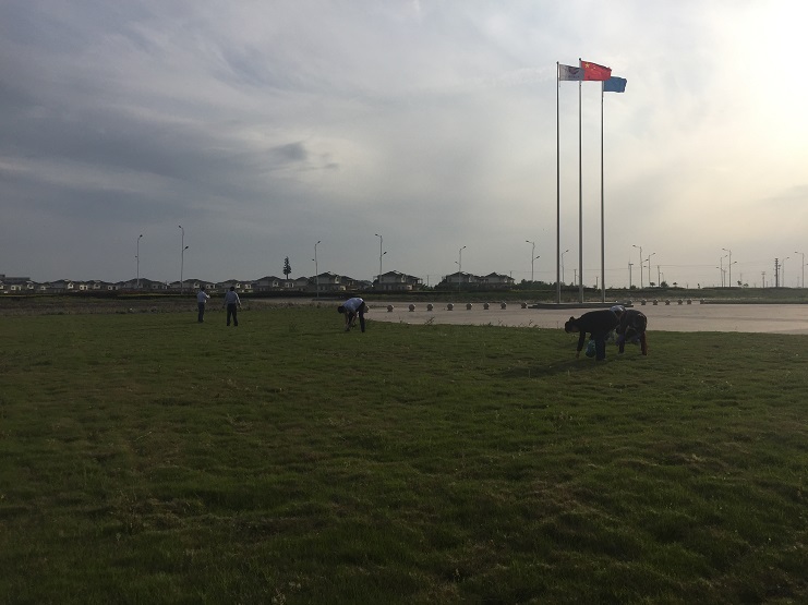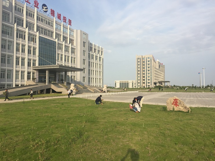 随着气温的升高,公司办公大楼前平整如毯的草坪,一段时间不处理就杂草丛生,影响美观,在机关党总支部的组织下,机关各部室工作人员利用下班前的半小时时间,众人齐上手,有的用手拔,有的拿着垃圾华袋,将杂草与垃圾往外清理,完全不顾手上沾满了又黑又黏的草汁,干得十分认真。