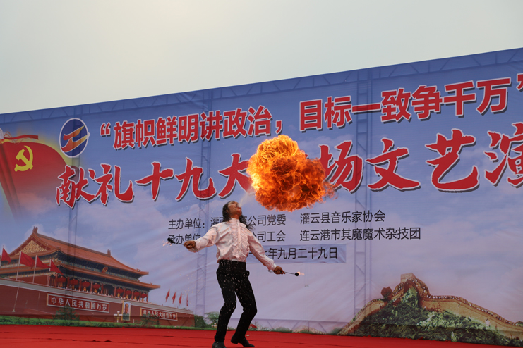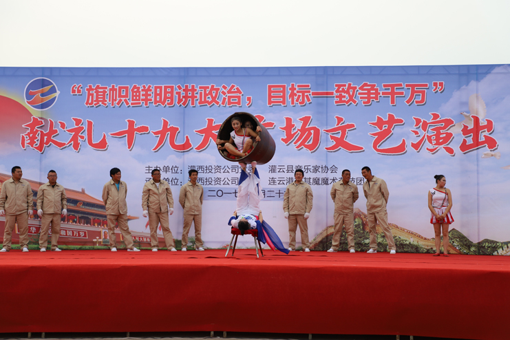 “没有共产党就没有新中国……”14点30分,演出在激昂的《没有共产党就没有新中国》大合唱中拉开序幕。并不晴朗的天空丝毫没有阻碍职工们观看演出的热情,“今天是你的生日,我的中国,清晨我放飞一群白鸽……”合唱团的一曲《今天是你的生日》唱出了灌西人“旗帜鲜明讲政治,实现综合利润一千万”的政治担当。演出共分为旗帜鲜明讲政治、撸起袖子加油干、魅力灌西展新篇三个乐章,《美丽的心情》沁人心脾,仿佛荡漾陶醉在歌声里。精彩的魔术、杂技赢得了现场观众喝彩声和多次掌声。《东北搞笑二人转》乐的大家笑声开怀,前仰后合。配乐诗朗诵《魅力灌西梦》,向大家展示了灌西将在“十三五”末奋力实现“经济强”、“职工富”、“环境美”、“素质高”的“强富美高”“魅力灌西”的梦想。广场舞《撸起袖子加油干》、《张灯结彩》更是生动体现了灌西人民热爱生活、积极向上的精神面貌,让观众们看得津津有味。