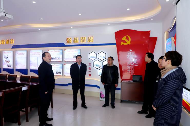 集团公司党委副书记戴鸿鸣一行在灌西公司党委书记、董事长、总经理李国文的陪同下,先后到新河党支部活动室、联合党支部活动室实地调研基层党支部活动室建设和使用情况,强调要始终抓牢基层党建工作,加快阵地规范化、标准化建设,切实增强基层党组织的凝聚力和战斗力。