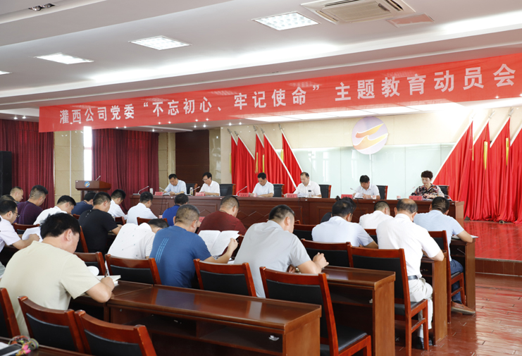 9月24日,灌西公司党委召开“不忘初心、牢记使命”主题教育动员会议,投资公司党委书记、董事长、总经理李国文作动员讲话,要求全公司上下用习近平新时代中国特色社会主义思想武装头脑,在以习近平同志为核心的党中央坚强领导下,在集团公司党委第四指导组的督促指导下,深入扎实地开展好主题教育,努力推动公司各业高质高效发展,以优异成绩迎接中华人民共和国成立70周年。集团主题教育第四指导组组长王建松及全体成员到会指导。党委副书记王宏主持会议。常务副总经理古浩光等领导班子成员参加会议。