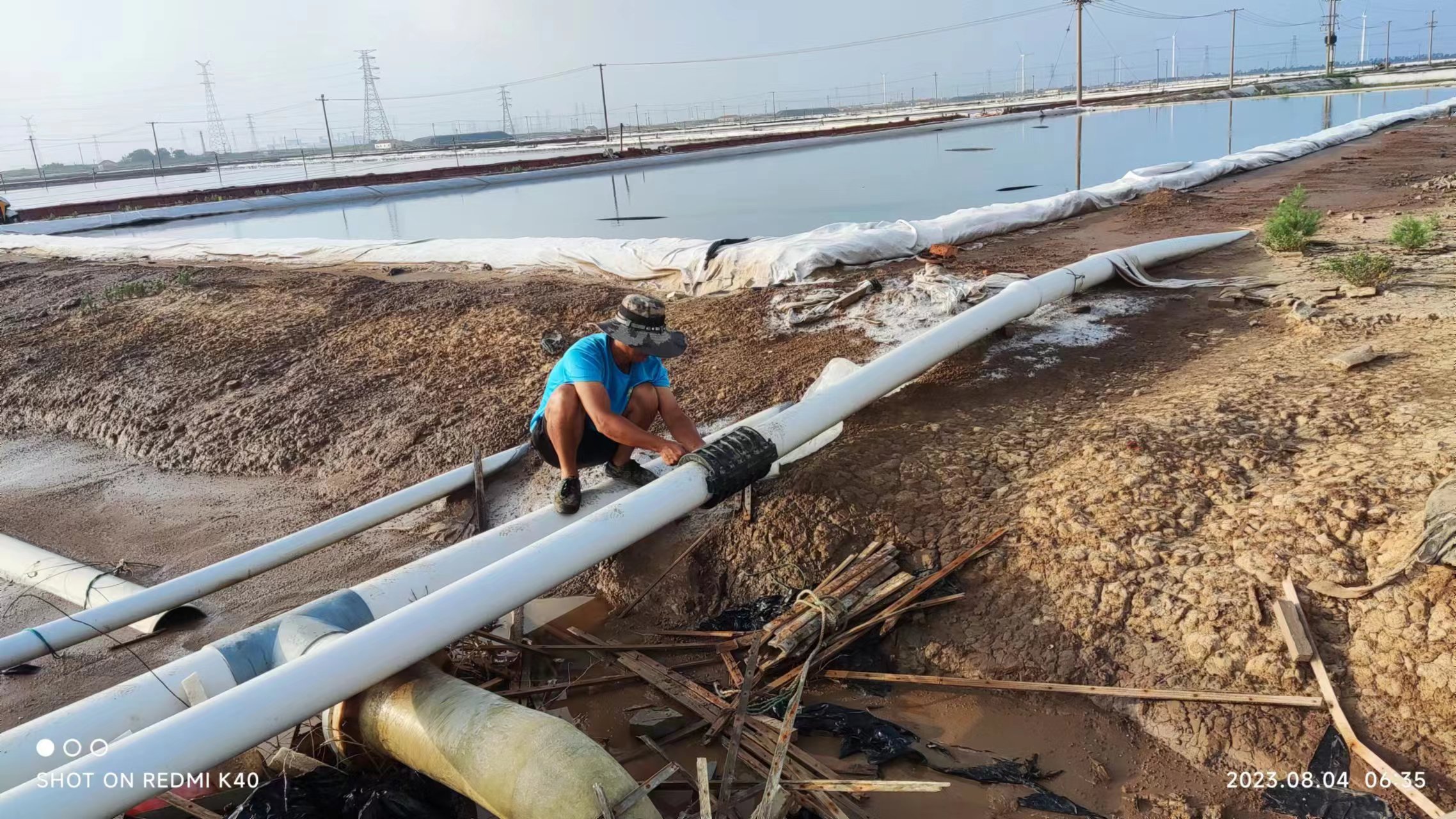 近日,海水盐生产基地利用沟塘里的闲置雨水,对输卤管道进行冲洗和检修,管道内壁的硫酸钙被雨水冲洗融化,排出管外,管网的压力和流量比以往明显增大,同时也暴露出存在的问题,因管道老化,出现许多漏点。