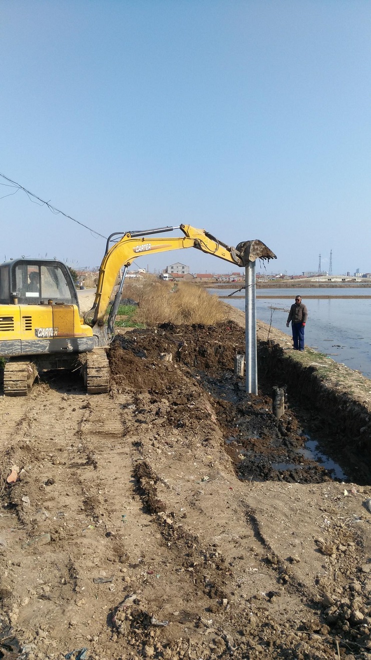 接到海盐基地标志牌制作任务后,机电服务公司能认真研究,制定施工方案,确保标志牌基础安全。(图为施工现场)