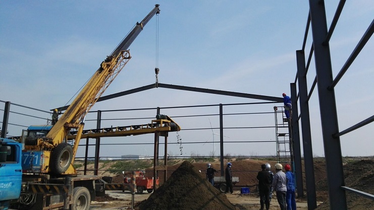 为了扩大有机肥项目生产场地、解决生产库存产品的堆放以及落实好翻堆发酵工序,绿淮公司积极协调全员参与,于4月中旬正式兴建钢结构厂房和混凝土场地铺设工作。目前厂房工程进展非常顺利,预计两周内竣工。(绿淮 张宝同)