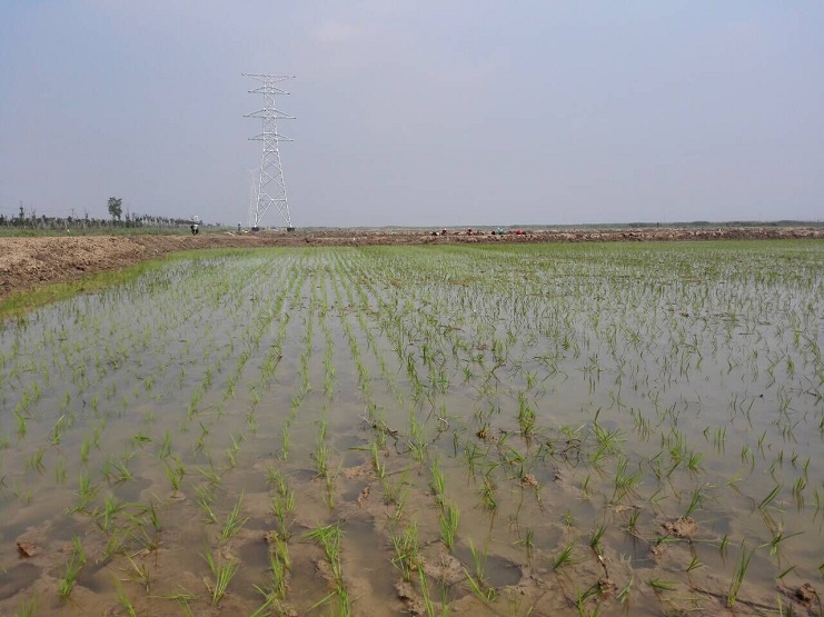 时下正值水稻插秧的大好时节。6月5日,实业公司组织人员四十余人,对农业分公司埒南片区的90亩稻田进行适时插秧。历时3天,今日即可完成插秧任务。 连日来,工人们克服天气炎热等因素,抢时间赶进度。从运苗、分苗到插种,田地里呈现一片忙碌景象。从远处看绿油油的一片,一株株嫩苗整齐地排列在水田里。下一步将做好插秧后的排碱、灌溉、施肥等工作,为今年水稻丰收打下坚实的基础。(史祥燕)