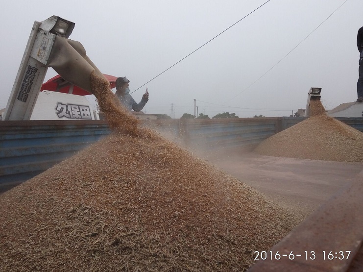 他立即会同农业分公司的全体员工,开赴地头,抢收小麦。联合收割机马力开足,看着一垄垄小麦被收割完,看着一袋袋小麦被装运上车,该公司参加抢收人员仍然忙碌着。天黑了,他们打开车灯和手提电灯,顶着高温、忍受着蚊虫的叮咬,目标只有一个,在雨到来前一定要完成小麦抢收任务。