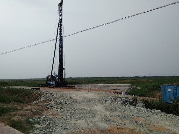 坐落在西旺水产公司农田区域内的其中的8个风力发电机建设项目,继续协调、征地、便道铺建完工后,目前进入桩基施工阶段。图为桩基施工现场(西旺宣)