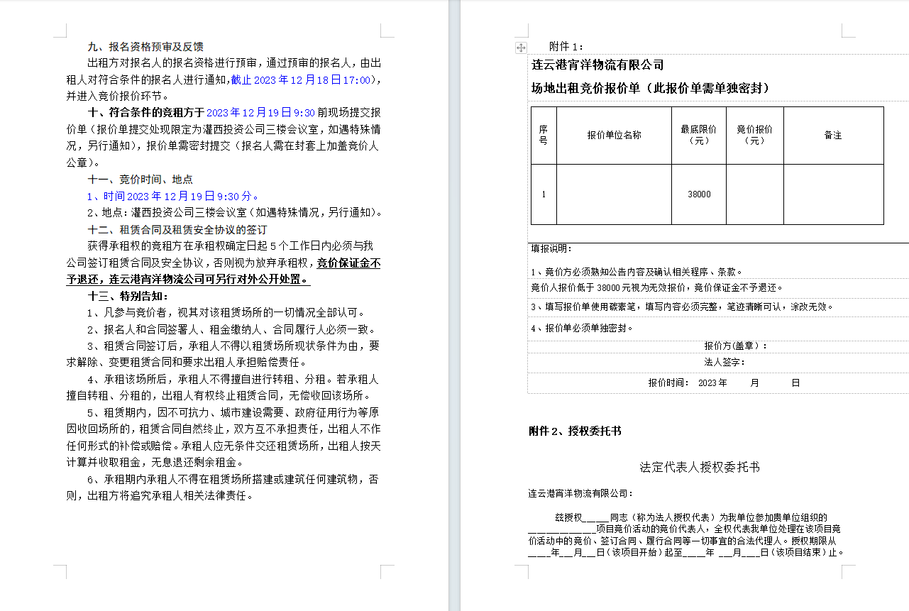 连云港宵洋物流有限公司场地对外公开招租二次公告