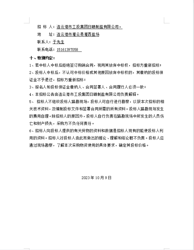 连云港市工投集团日晒制盐有限公司 玻璃纤维杆招标公告