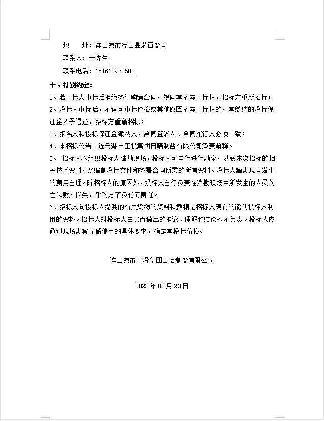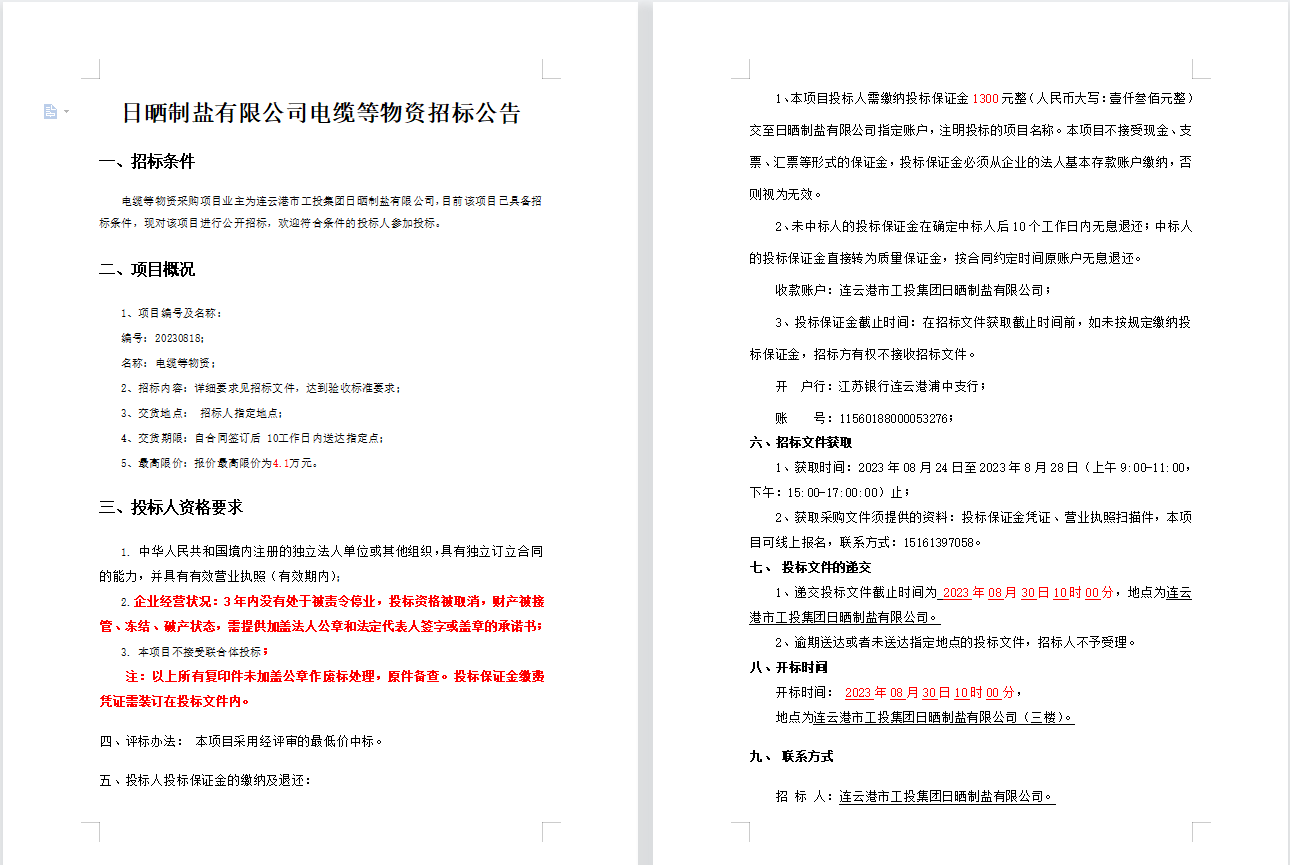 日晒制盐有限公司电缆等物资招标公告