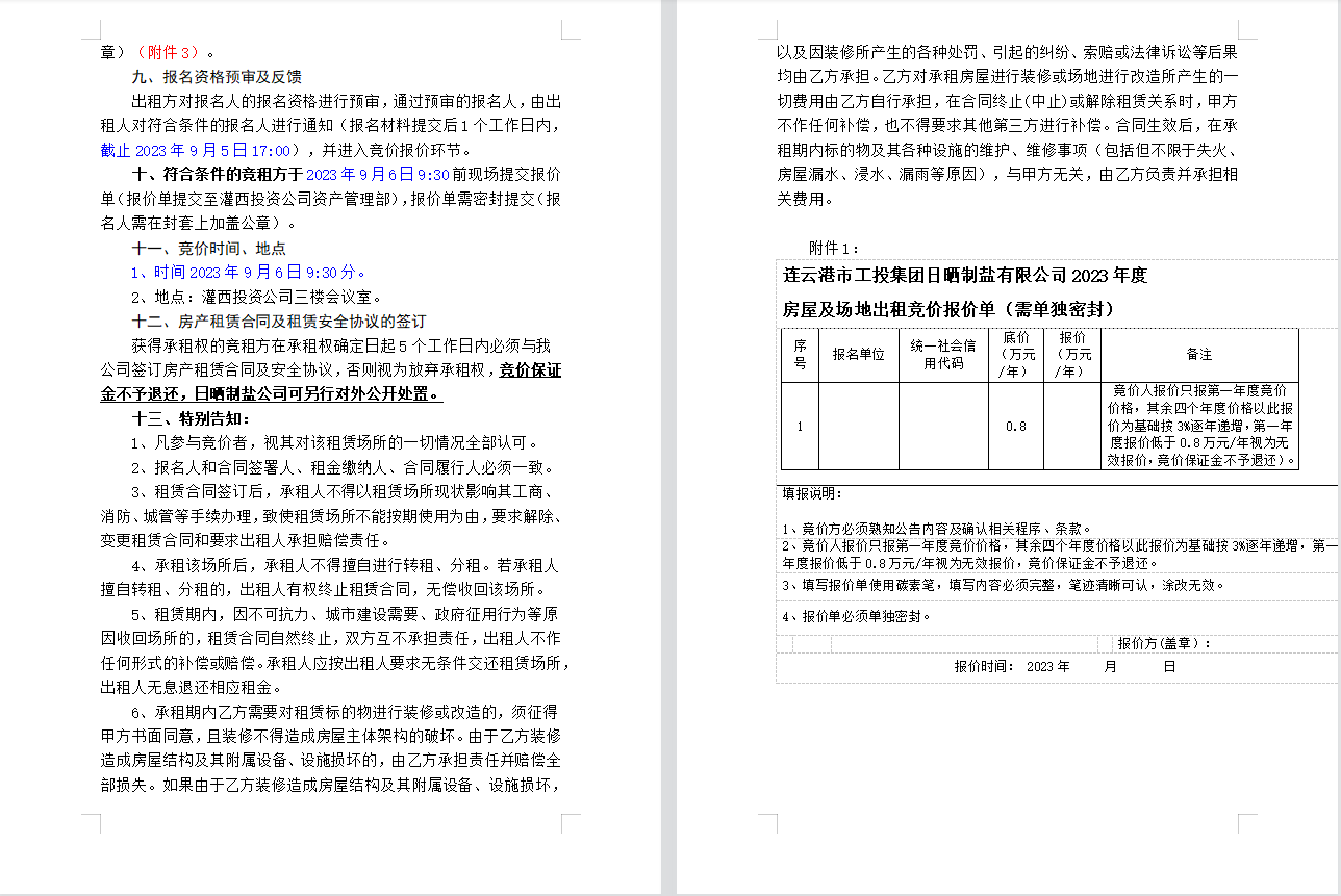 连云港市工投集团日晒制盐有限公司 房屋及场地对外公开招租公告