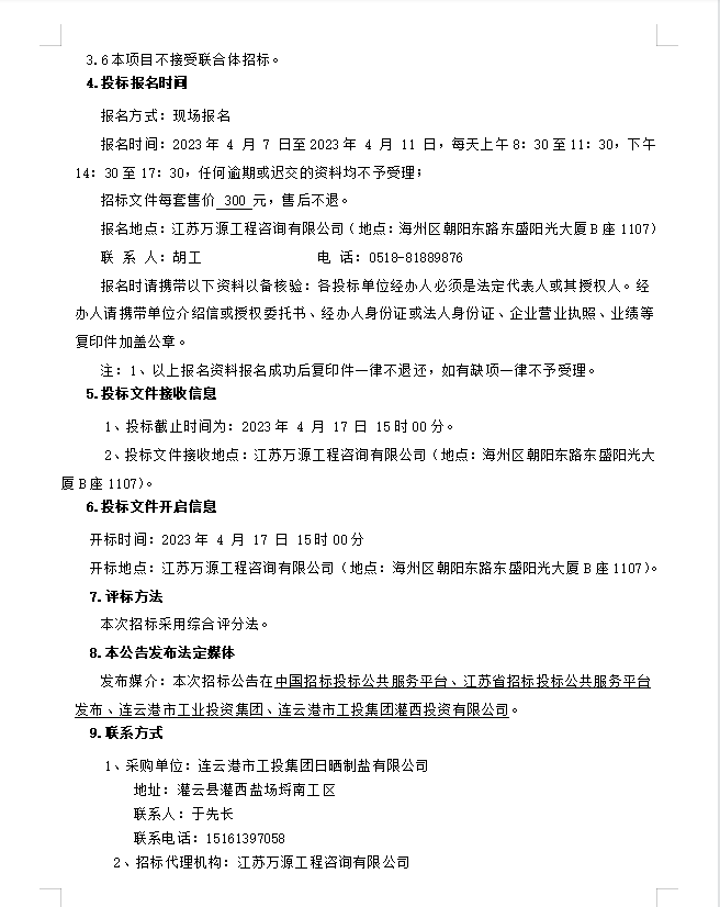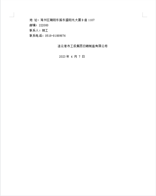连云港市工投集团日晒制盐有限公司盐膜招标公告