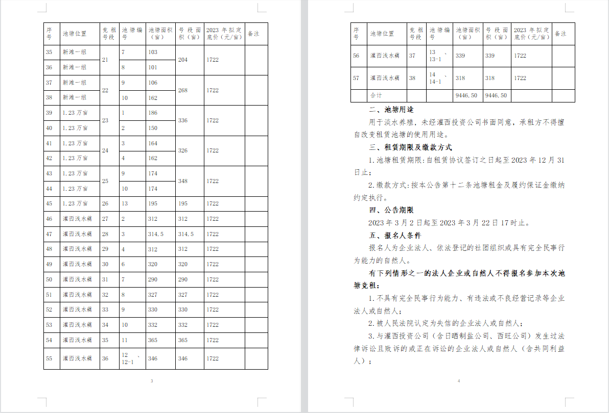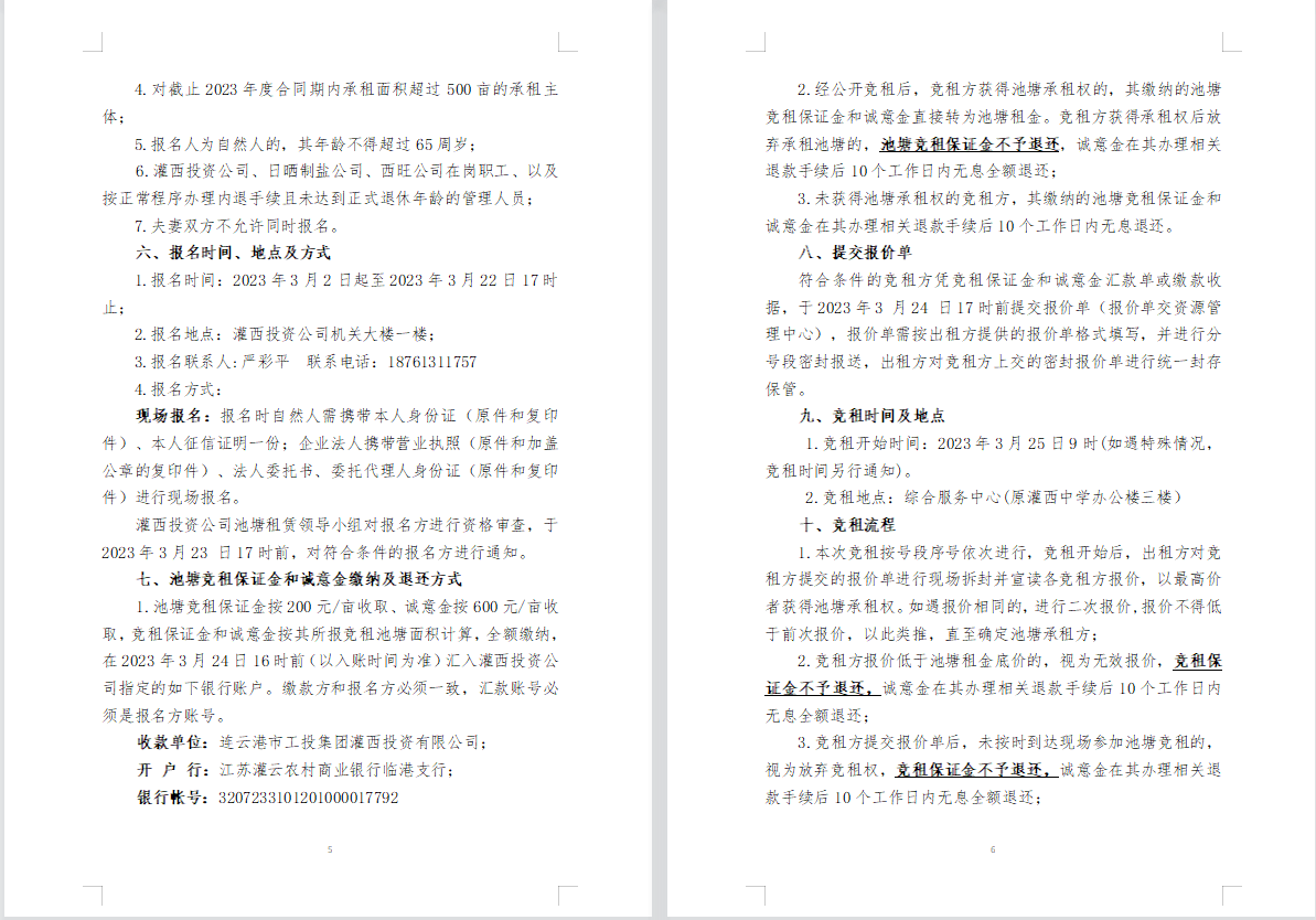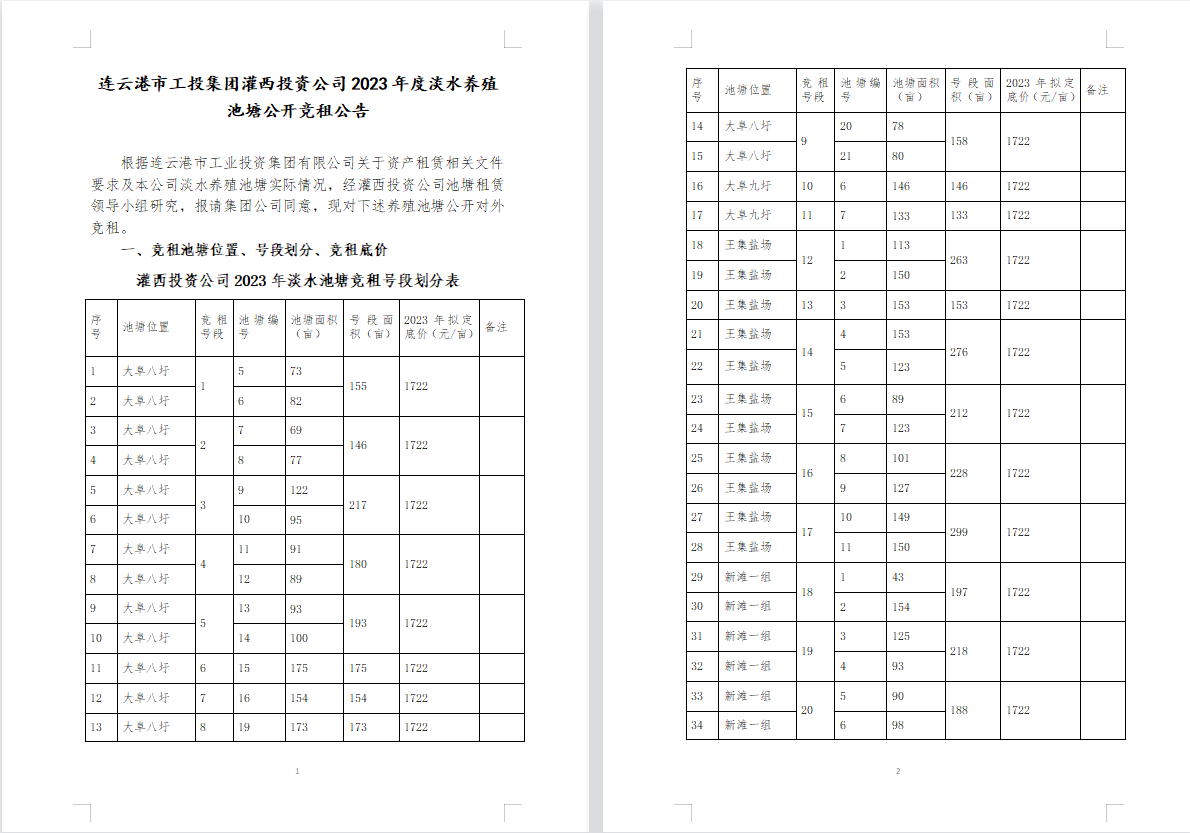 连云港市工投集团灌西投资公司2023年度淡水养殖池塘公开竞租公告