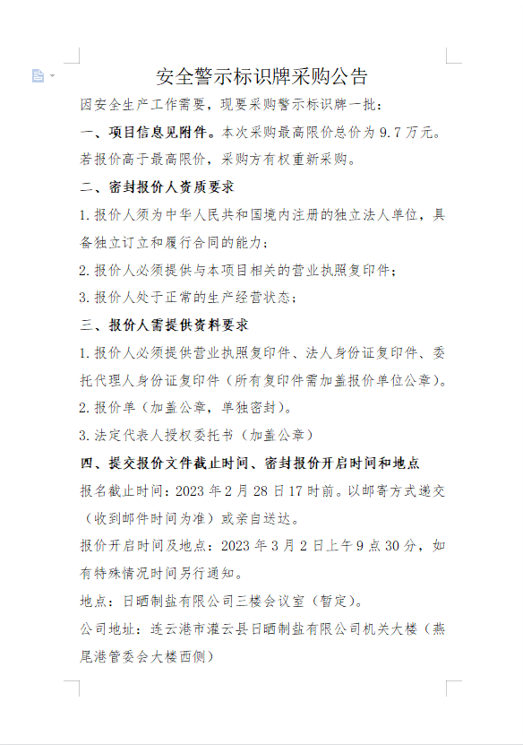 连云港市工投集团灌西投资(日晒制盐)有限公司