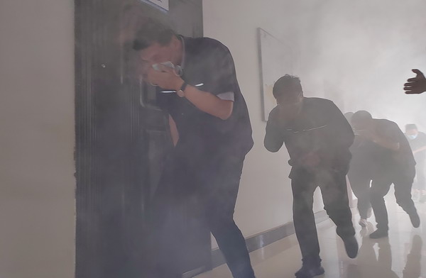演练分为火灾应急疏散、火灾应急救援、有限空间应急救援三个部分展开。在火灾应急疏散演练中,设定三楼会议室为模拟火灾现场,人员2分钟内从指定逃生路线规范、有序、迅速撤离到了安全地带;火灾事故应急救援和有限空间应急救援分别模拟纸箱库着火及地龙有害气体窒息,分信息报告、启动应急响应、现场警戒、医疗救护、事故抢险等各处置环节,整个演练紧张有序,过程流畅,达到检验应急预案的可行性和提高应急救援人员的应急处置能力的效果,为完善我公司应急预案提供实践依据。
