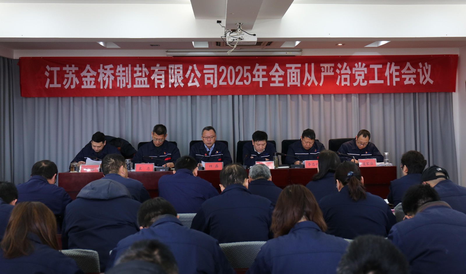 2月14日,金桥制盐公司党委召开2025年全面从严治党工作会议,回顾总结2024年全面从严治党工作,安排部署2025年重点任务,坚定不移推动公司高质量发展。公司党委书记田磊作党委工作报告,纪委书记袁忠作纪检监察工作报告,常务副总经理薛化光主持会议。