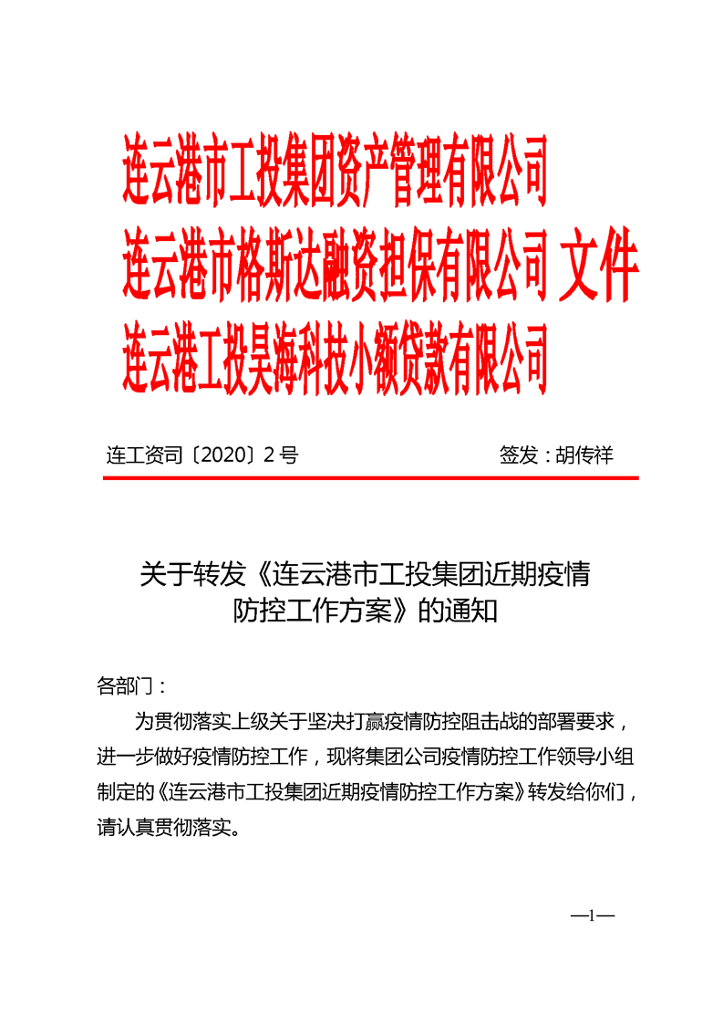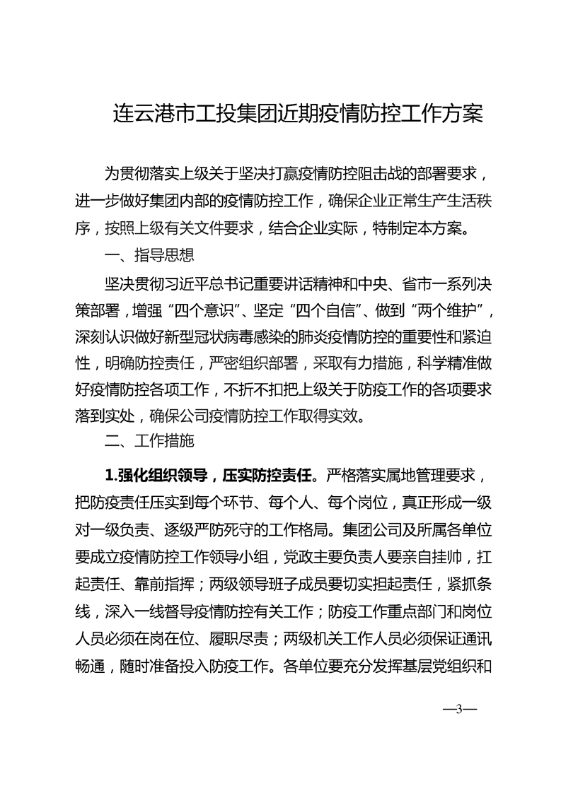 《连云港市工投集团近期疫情防控工作方案》的通知